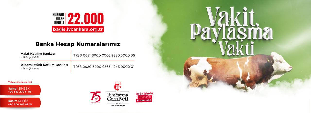 Vacip, adak, akika ve nafile kurbanlarınızı cemiyetimize bağışlayarak yurtlarımızda barınan öğrencilerimizin et ihtiyacına katkı sağlayabilirsiniz. Kurban Hisse bedeli 22.000 TL dir